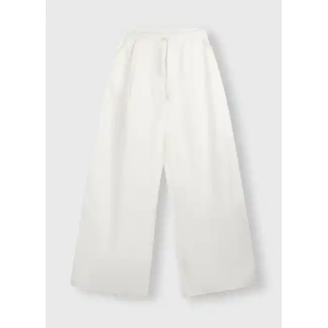 The Wide Leg Pants Ecru 10 Days Amsterdam Weite Hose in Relaxed Fit, aus Slub Twill in einem Baumwoll-Leinen-Mix gefertigt. Mit einem elastischen Jersey-Taillenbund mit Jersey-Tunnelzug und Gรผrtelschlaufen, schrรคgen Eingrifftaschen, einem oberhalb der linken Eingrifftasche applizierten Label, einer Mini-Stripes-Stickerei unterhalb der linken Eingrifftasche und einer doppelten Paspeltasche auf der Rรผckseite.…