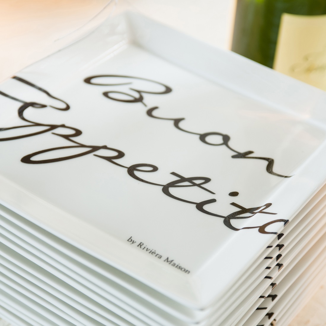 Der Buon Appetito Square Plate von Riviรจra Maison bringt mediterranes Lebensgefรผhl auf den Tisch. Die quadratische Form sorgt fรผr eine moderne Optik, wรคhrend das charakteristische โBuon Appetitoโ-Design dem Teller eine charmante, italienische Note verleiht. Ideal fรผr Vorspeisen, Desserts oder kleine Speisen โ perfekt fรผr stilvolle Tischmomente.