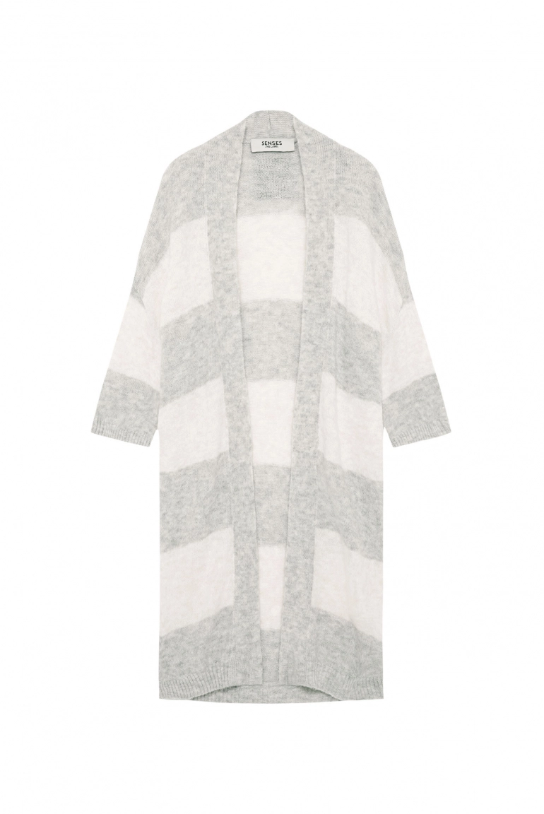 Long Cardigan KAL:LIE mit Blockstreifenย cozy grey melange / ivory