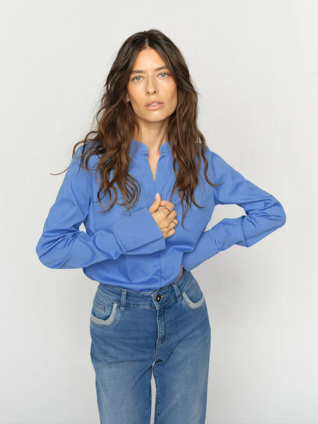 Das MMMatthea Hemd von MOS MOSH รผberzeugt als stilvolles Basic mit klarer, femininer Ausstrahlung. In Ultramarine wirkt das Hemd modern und selbstbewusst, ohne aufdringlich zu sein. Der schmeichelhafte V-Ausschnitt, die verdeckte Knopfleiste und die taillierte Passform sorgen fรผr eine elegante Silhouette.