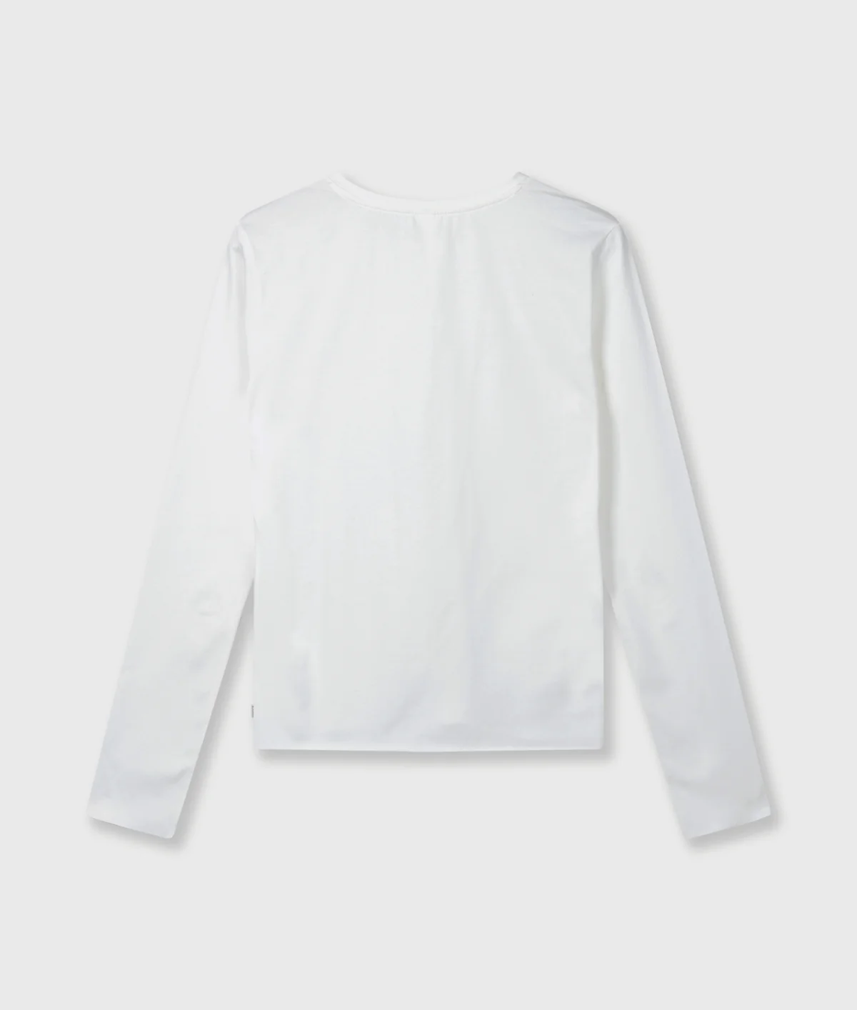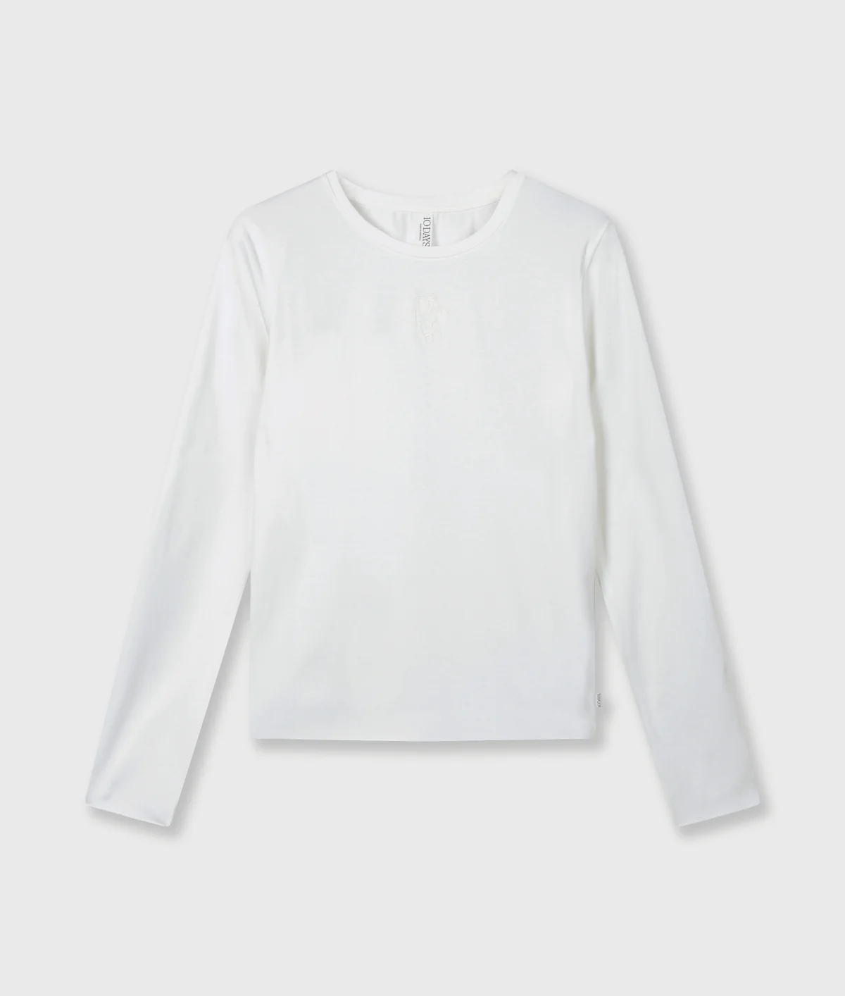 Slim Fit Longsleeve Top aus weicher, GOTS-zertifizierter Bio-Baumwolle. Mit Rundhalsausschnitt, Raw-Edge-Saum und -Armabschlรผssen und einer โCurly 10โ-Stickerei auf der Brust.