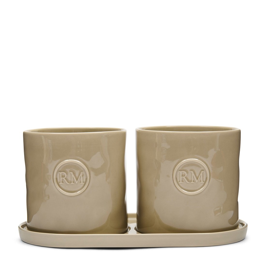 Bring frische Krรคuter und stilvolle Ausstattung in Deine Kรผche: Das PortofinoโฏHerbsโฏKitchenโฏSet besteht aus zwei eleganten Krรคutertรถpfen auf einem ovalen Tablett und wurde aus hochwertigem Steingut gefertigt.ย