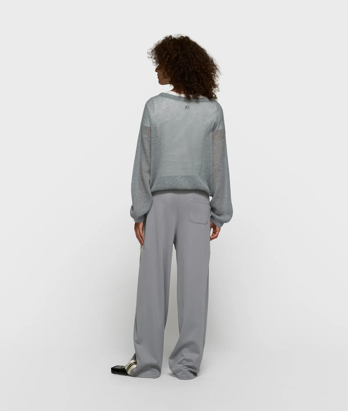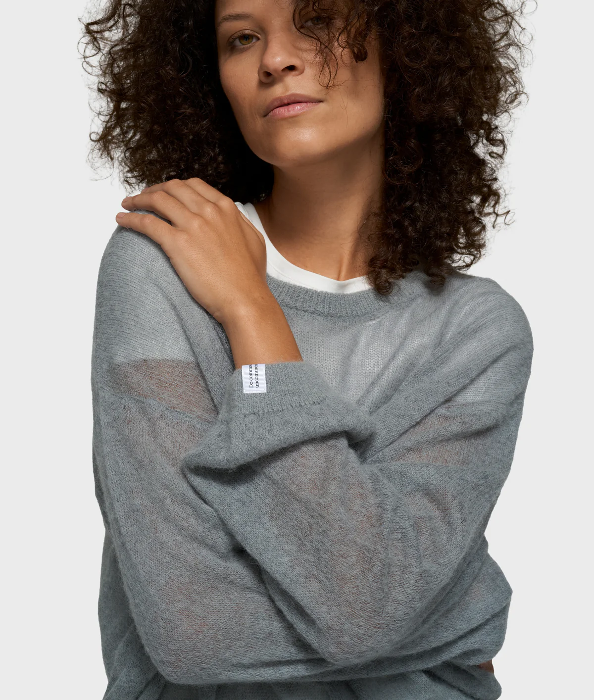 Dรผnner Relaxed Fit Strickpullover aus einem feinen Alpaka-Woll-Mix. Mit Rippenstrickbรผndchen an Rundhalsausschnitt, รrmeln und Saum und einem auf dem Rรผcken aufgestickten โ10โ-Monogramm.