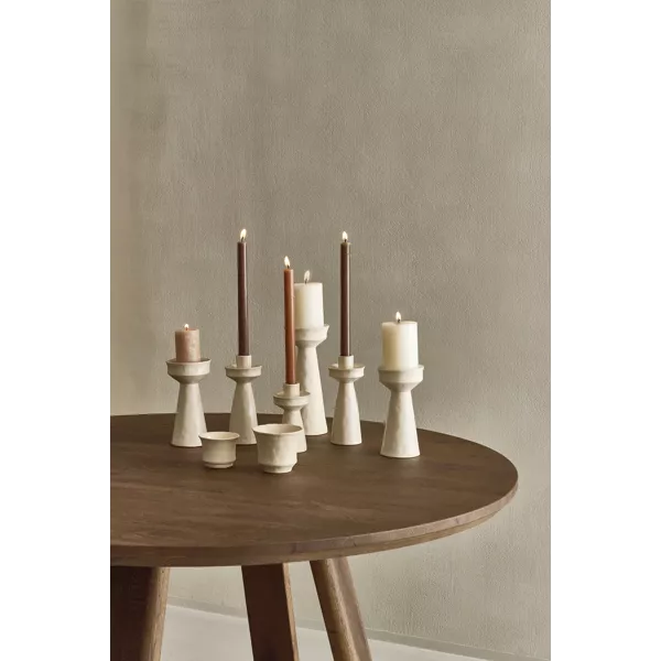 Der TIERNO Teelichthalter in dieser größeren Variante bringt sanfte Eleganz und warme Lichtmomente in dein Zuhause. Seine weichen Linien und das dezente Off-White wirken harmonisch, modern und wunderbar zeitlos.