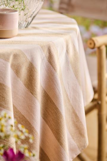 IB Laursen Tischdecke Linus โ lรคnglich mit breiten Streifen in Hellbraun & Rosa